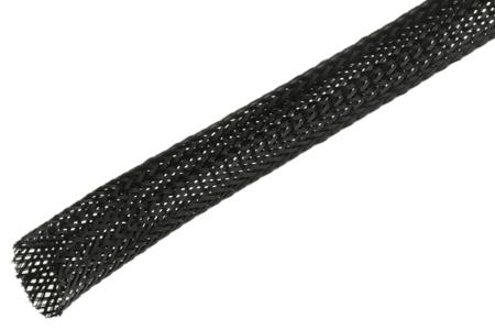 SES Sterling Expandable Braided PET Black Cable Sleeve, 10mm Diameter, 100m Length
