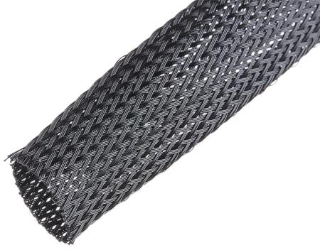 SES Sterling Expandable Braided PET Black Cable Sleeve, 19mm Diameter, 25m Length