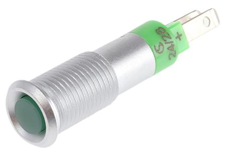 Signal Construct Green Indicator, 24V, 8mm Mounting Hole Size, Solder Tab Termination