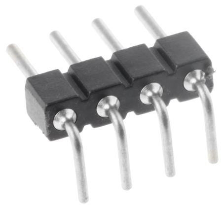 Preci-Dip 800 Series Right Angle Through Hole Pin Header, 4 Contact(s), 2.54 mm Pitch, 1 Row, Unshrouded