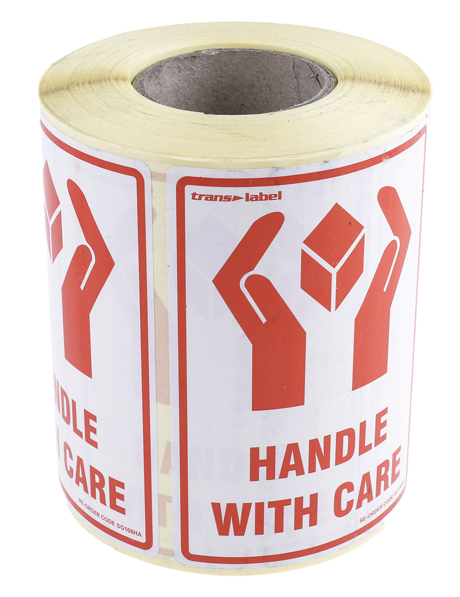 RS PRO Paper Safety Labels, Handle with Care-Text 79 mm x 108mm