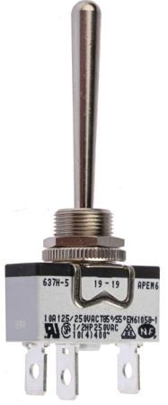 Apem Toggle Switch, Panel Mount, (On)-Off-(On), SPDT, Solder Terminal