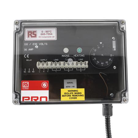 RS PRO Trace Heating Thermostat 75mm x 200mm x 150mm, 0 → +90 °C