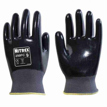 Unigloves 250FC Black, Grey Polyester Work Gloves, Size 8, Nitrile Coating